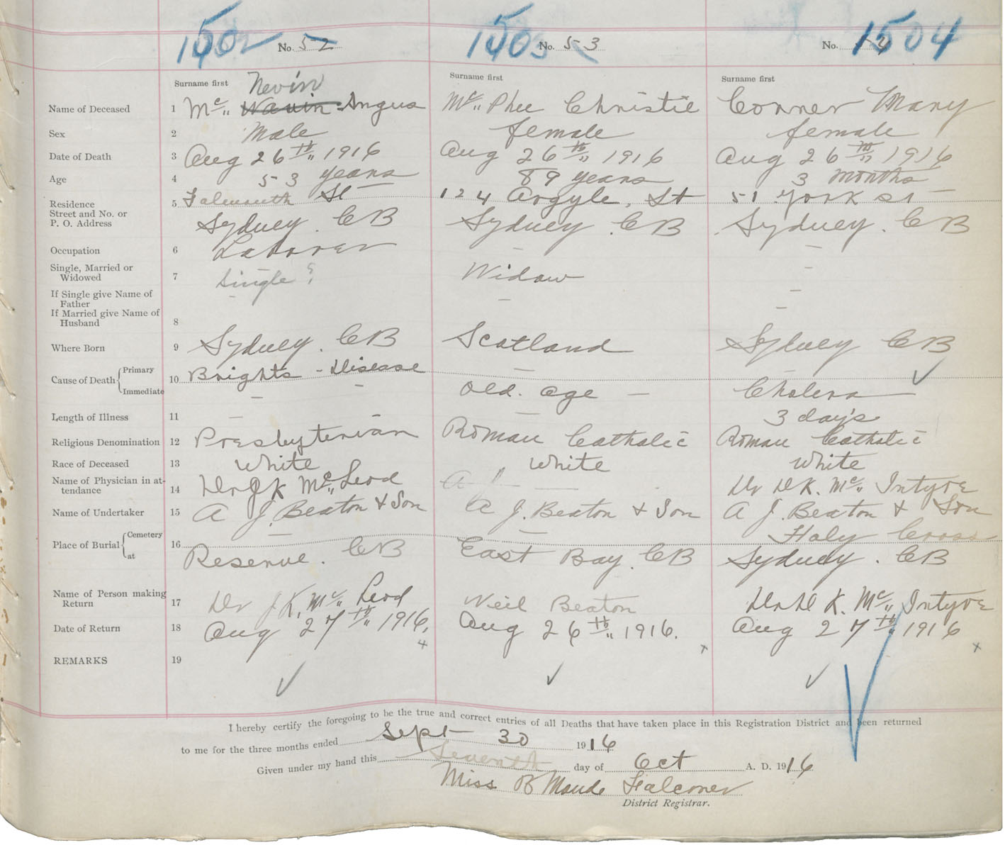 Death Registration: Year: 1916 book: 28 page: 371 number: 1504