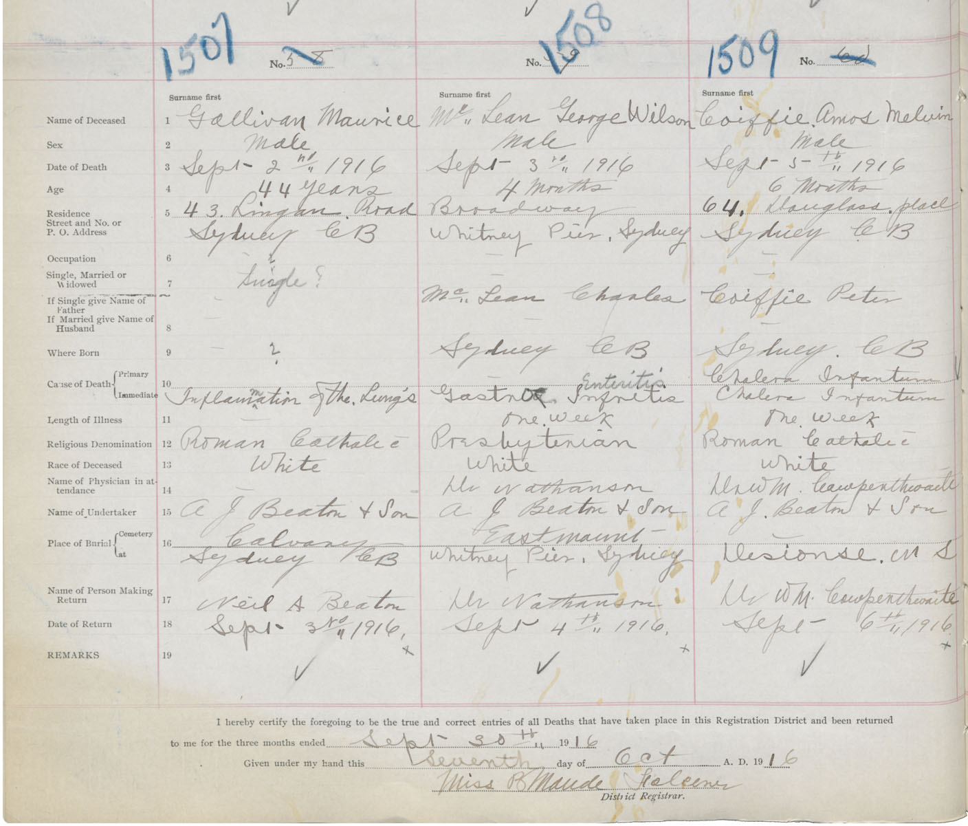 Death Registration: Year: 1916 book: 28 page: 372 number: 1509
