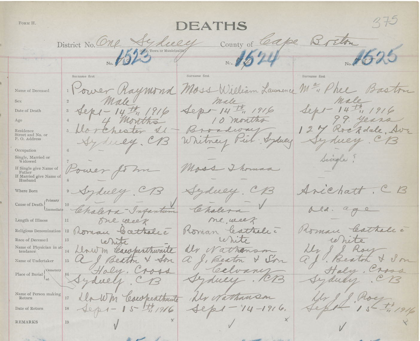 Death Registration: Year: 1916 book: 28 page: 375 number: 1525