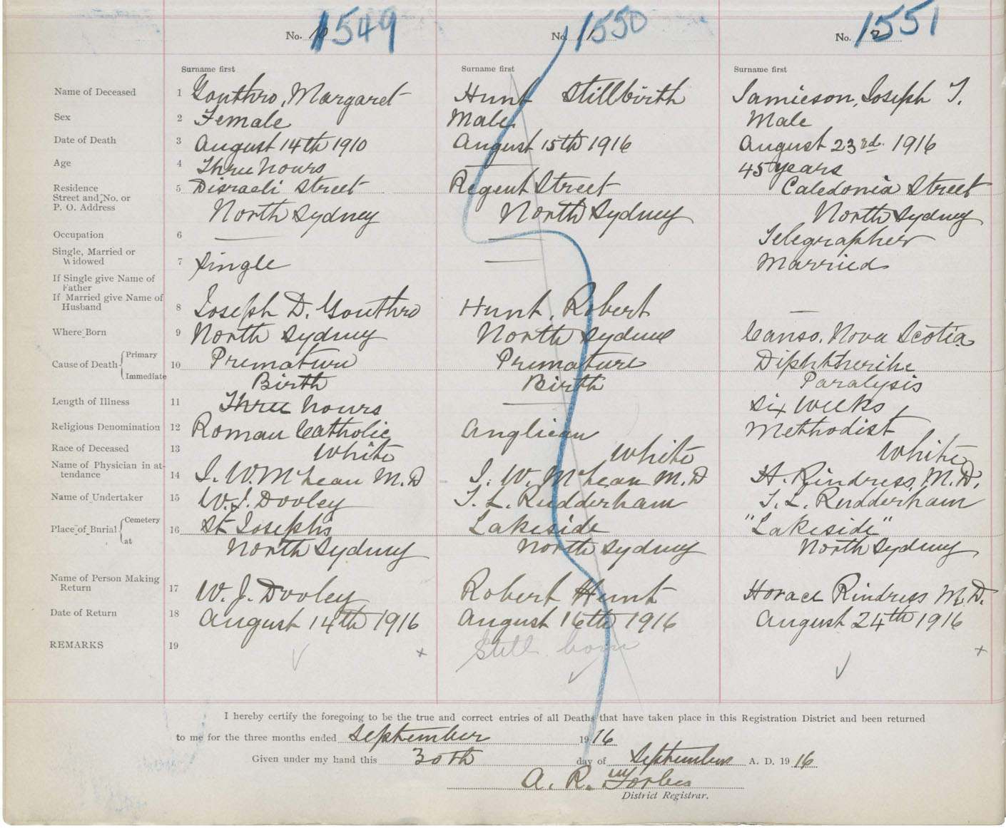 Death Registration: Year: 1916 book: 28 page: 380 number: 1551