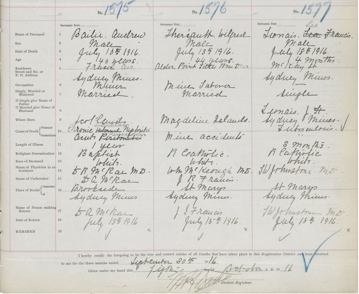 Death Registration: Year: 1916 book: 28 page: 387 number: 1577