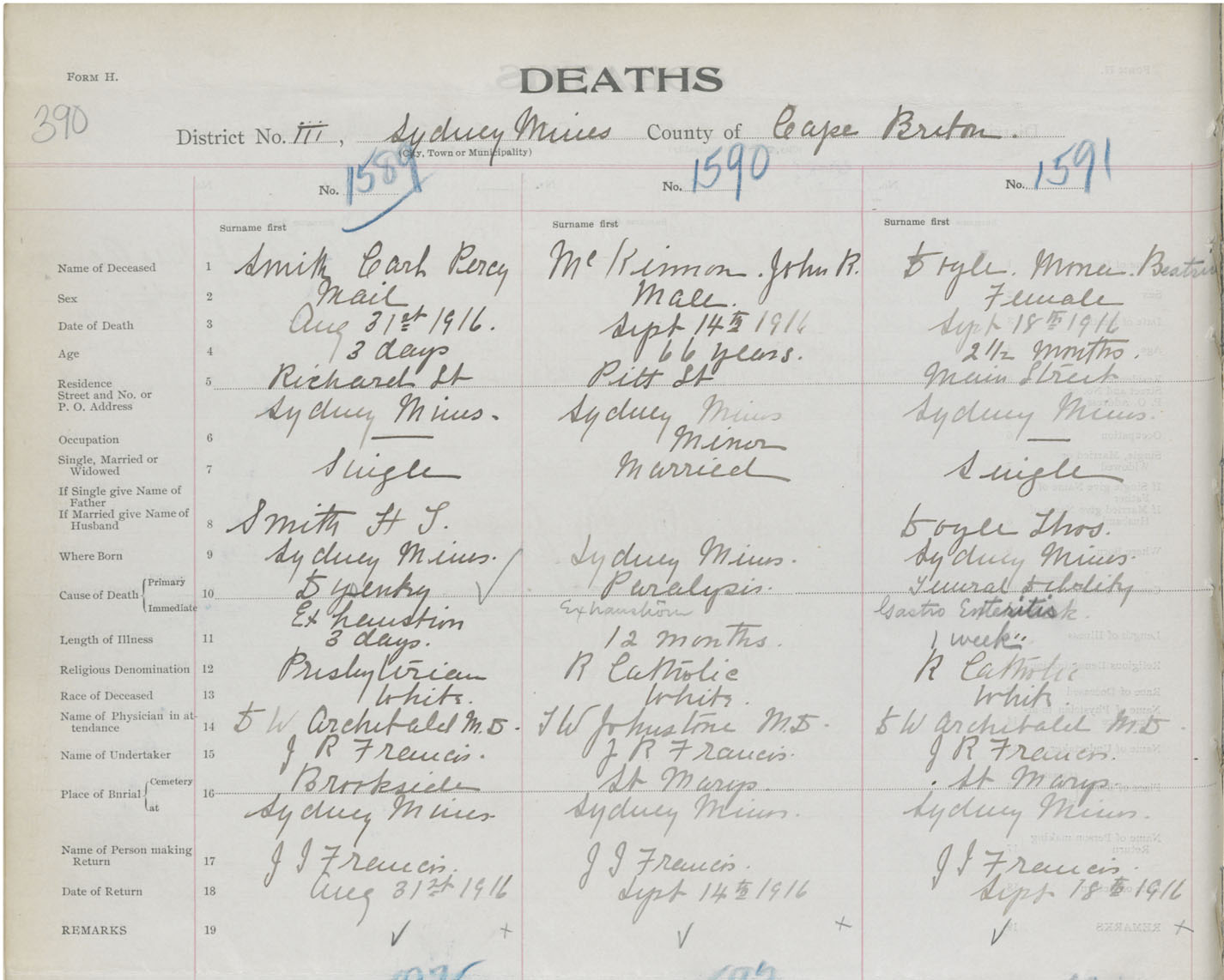 Death Registration: Year: 1916 book: 28 page: 390 number: 1591