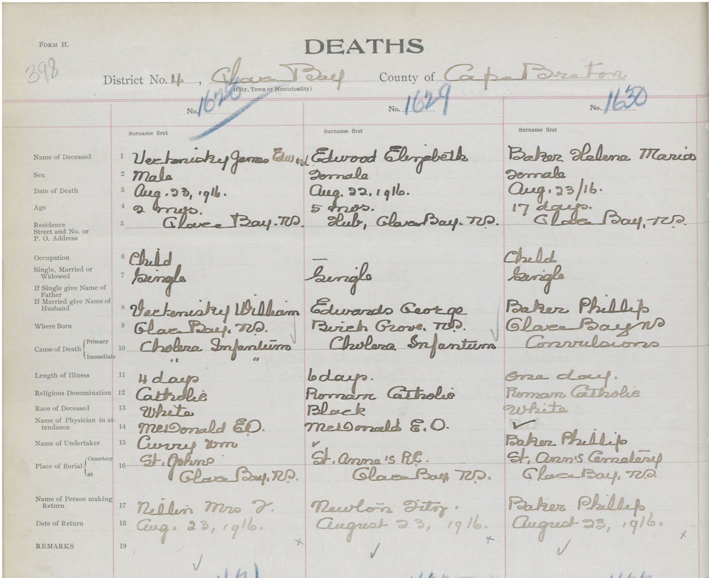 Death Registration: Year: 1916 book: 28 page: 398 number: 1630