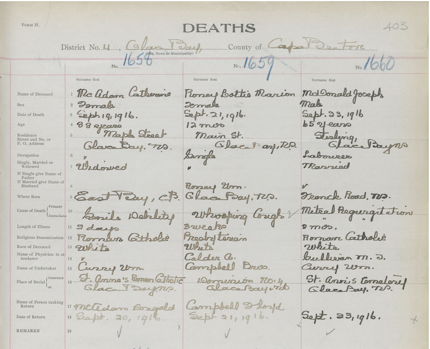 Death Registration: Year: 1916 book: 28 page: 403 number: 1660