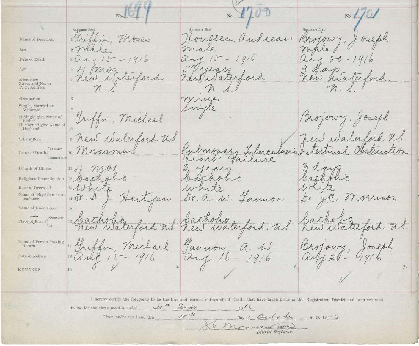 Death Registration: Year: 1916 book: 28 page: 418 number: 1701