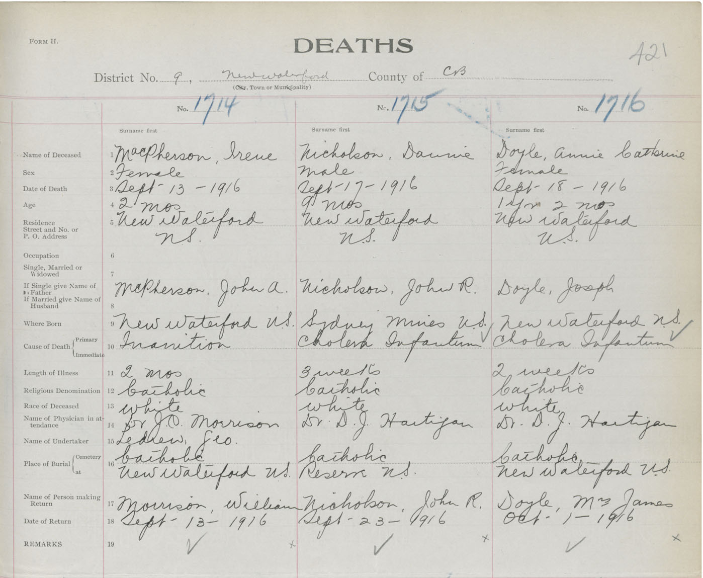 Death Registration: Year: 1916 book: 28 page: 421 number: 1716
