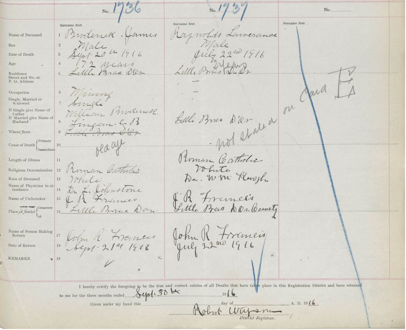 Death Registration: Year: 1916 book: 28 page: 427 number: 1737