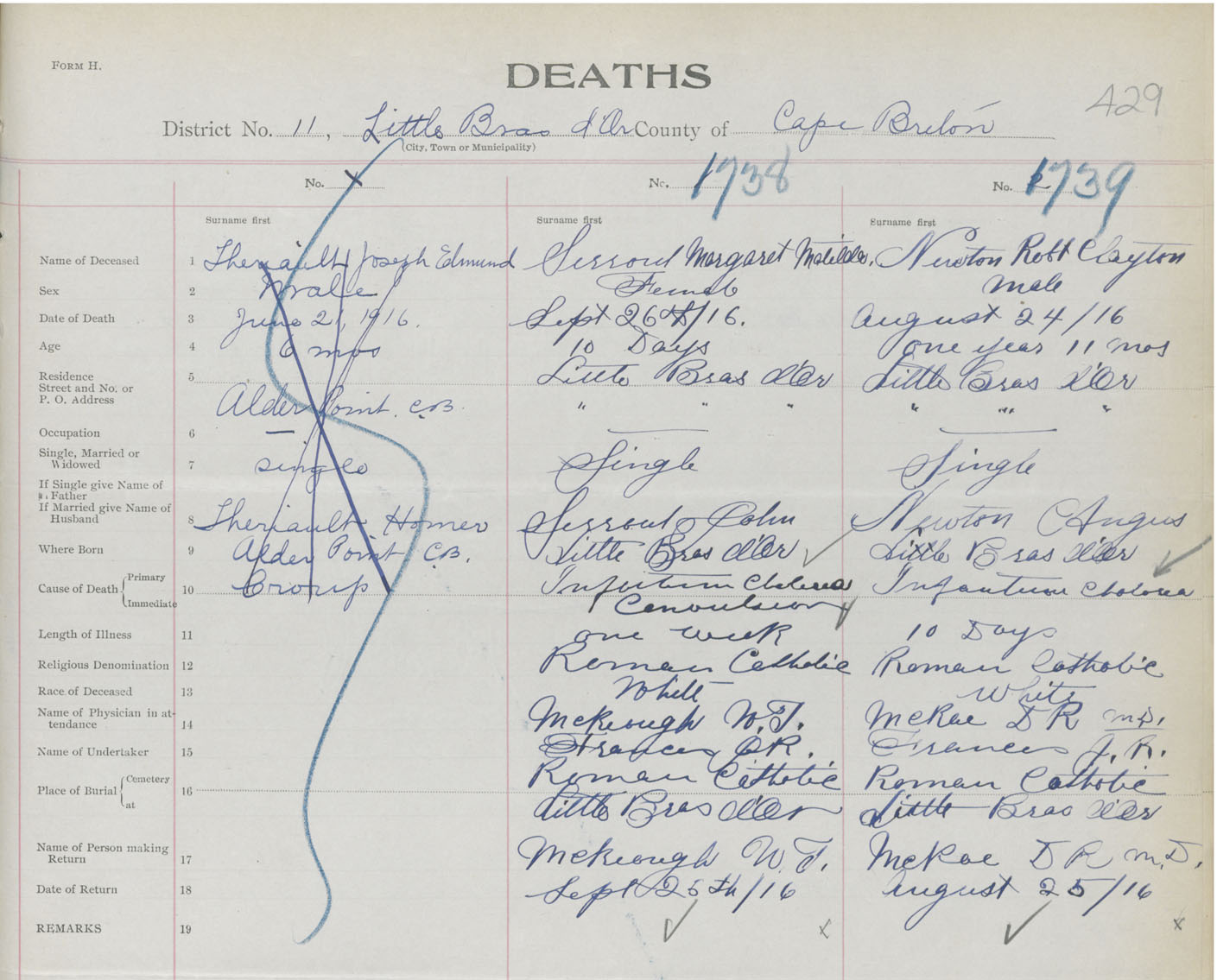 Death Registration: Year: 1916 book: 28 page: 429 number: 1739