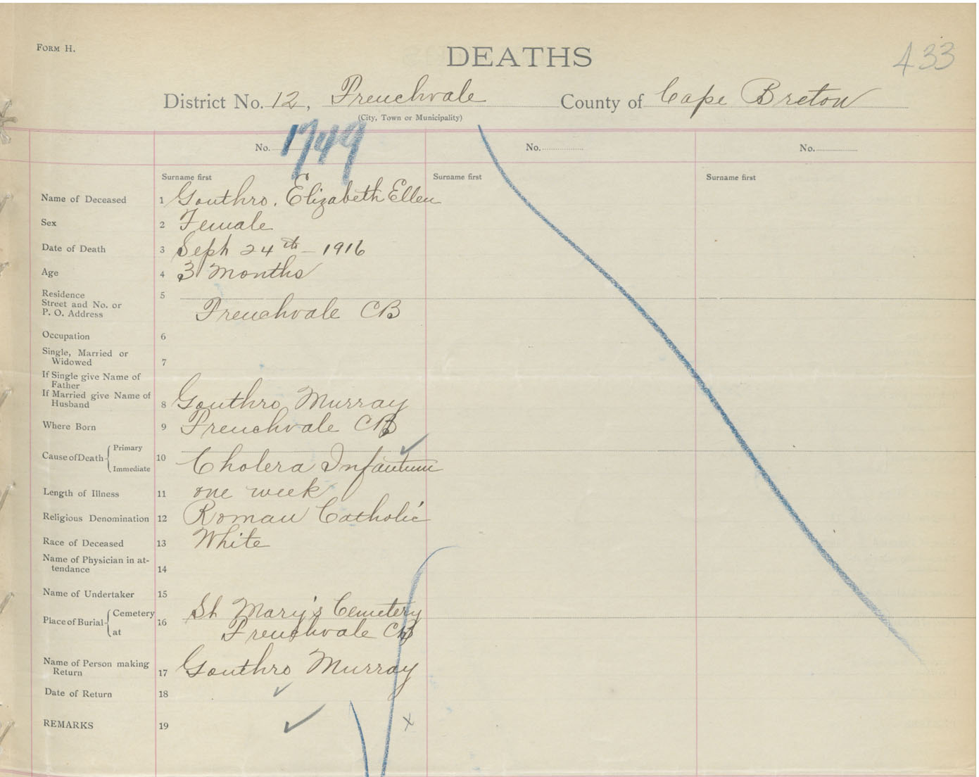 Death Registration: Year: 1916 book: 28 page: 433 number: 1749