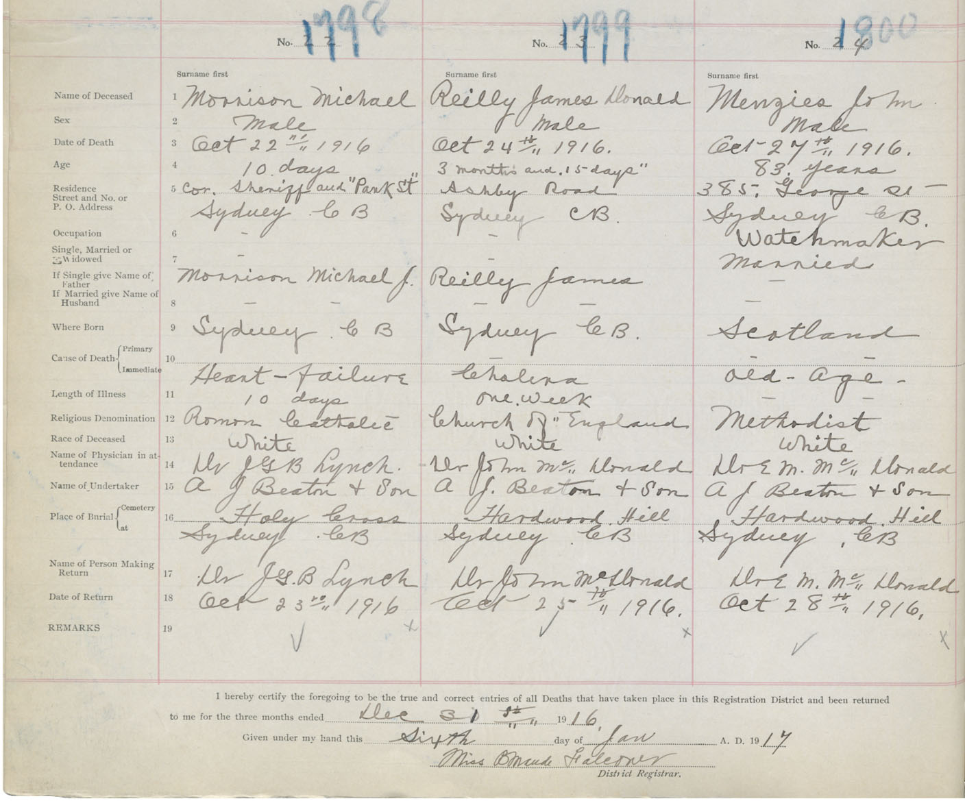 Death Registration: Year: 1916 book: 28 page: 450 number: 1800