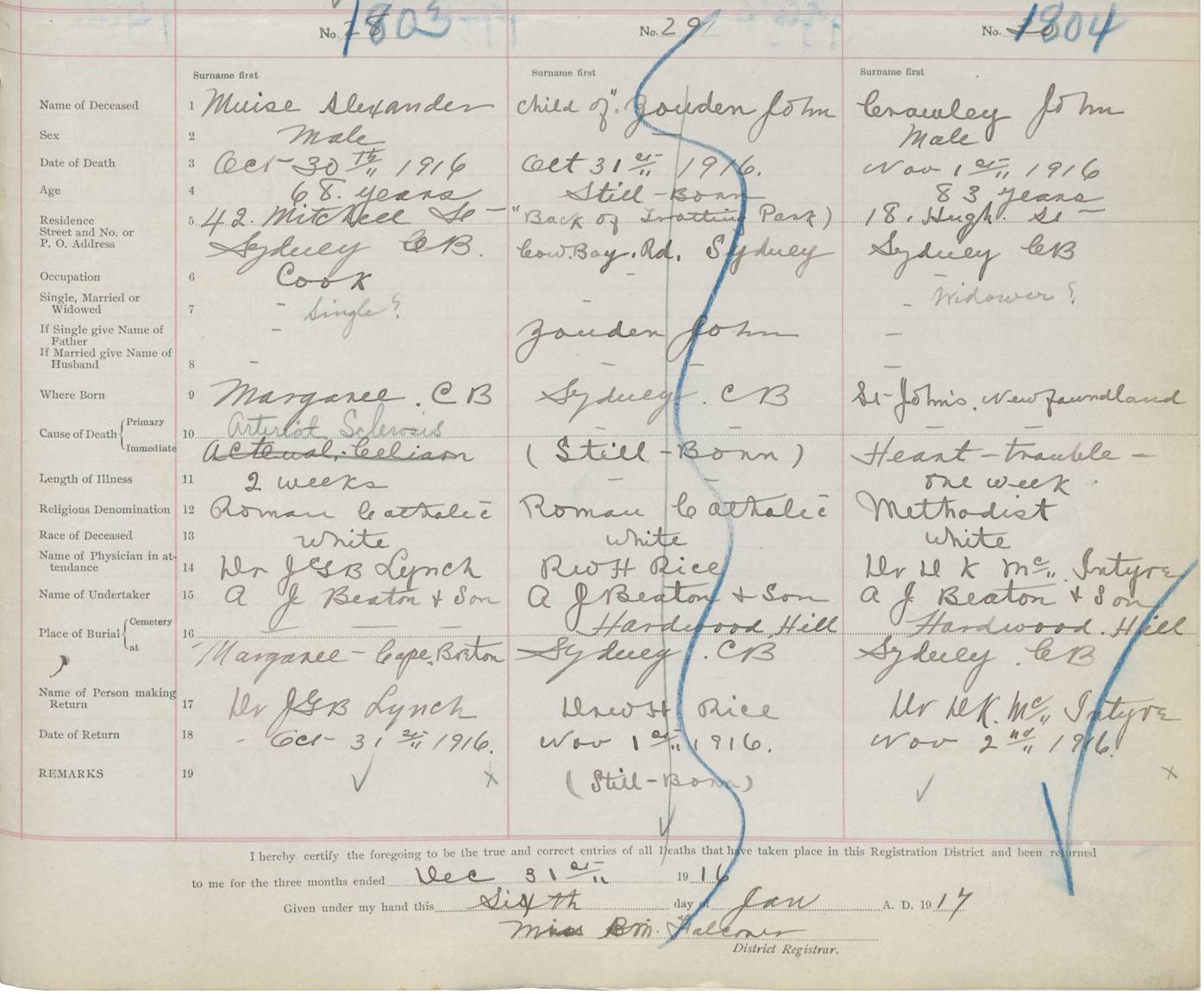 Death Registration: Year: 1916 book: 28 page: 451 number: 1804