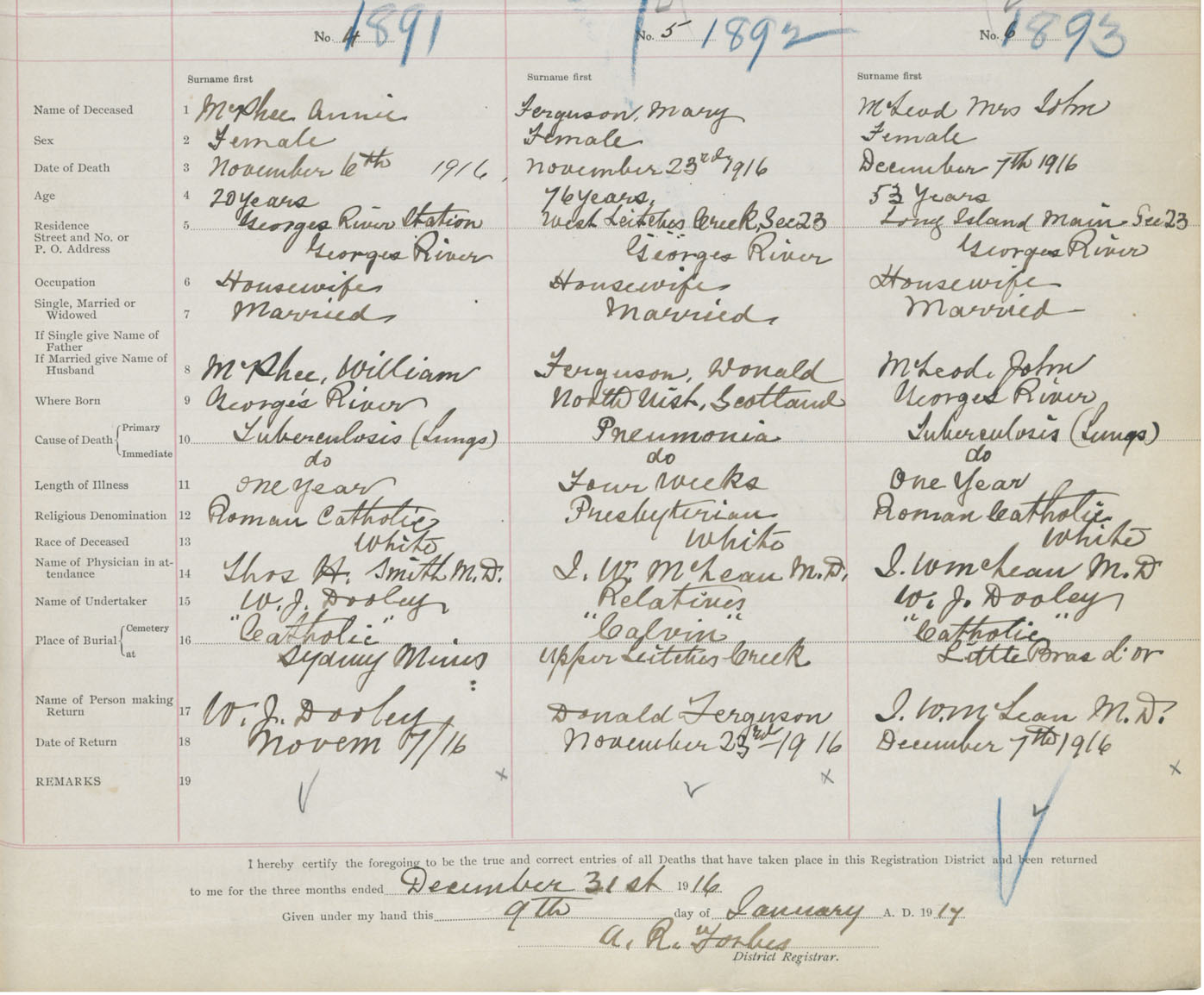Death Registration: Year: 1916 book: 28 page: 469 number: 1891