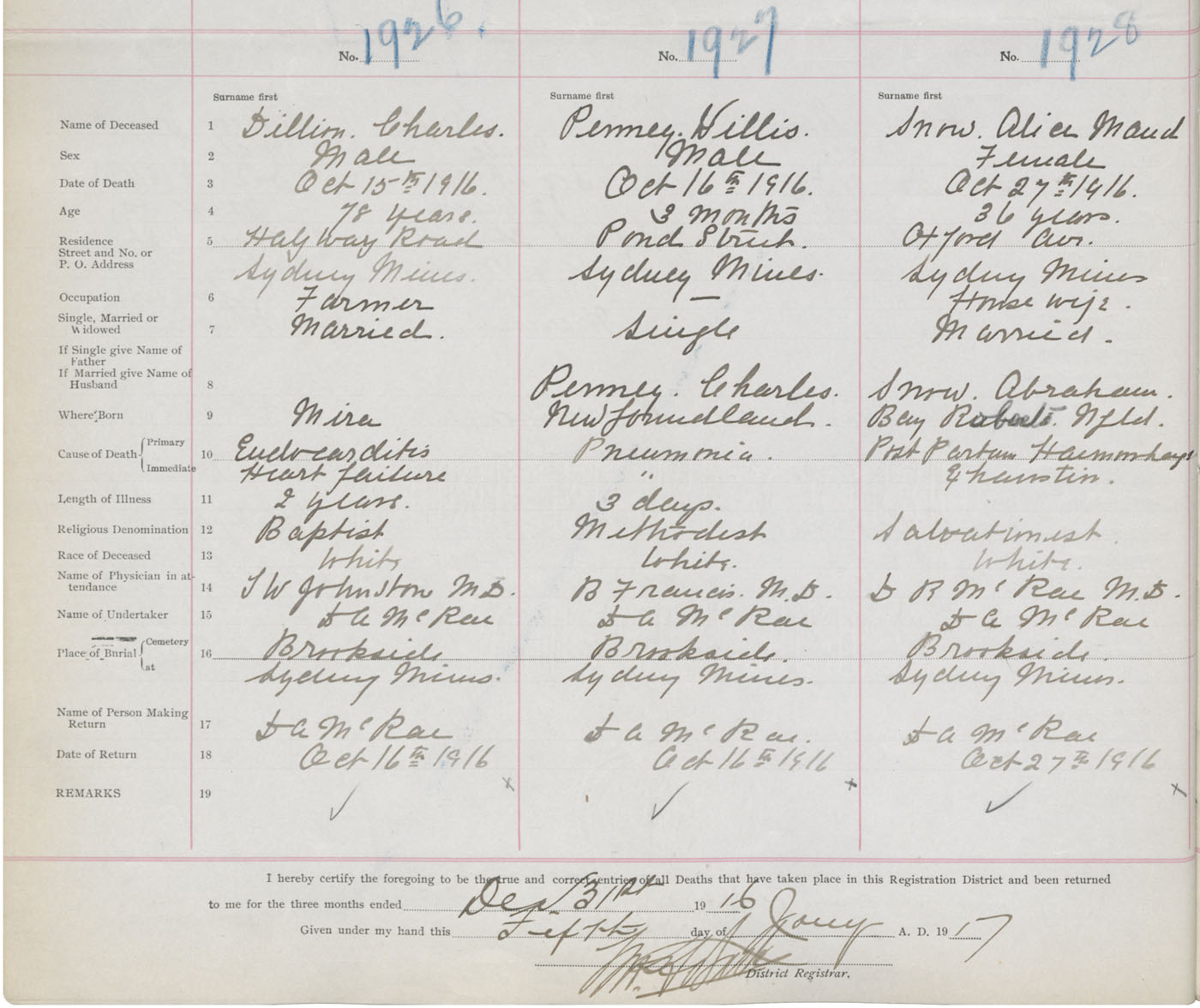Death Registration: Year: 1916 book: 28 page: 476 number: 1926