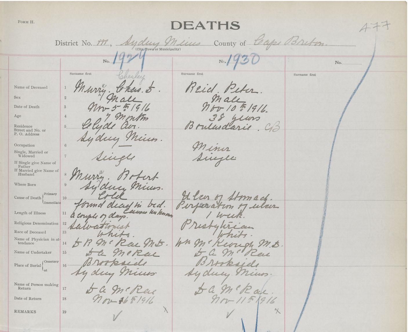 Death Registration: Year: 1916 book: 28 page: 477 number: 1929