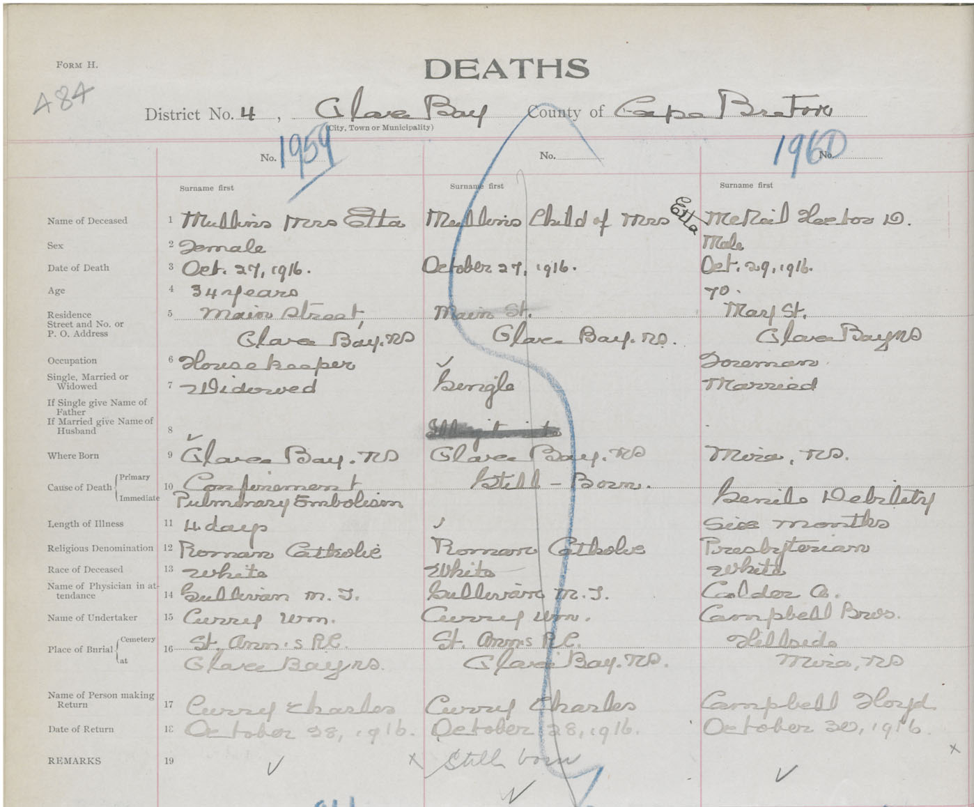 Death Registration: Year: 1916 book: 28 page: 484 number: 1959
