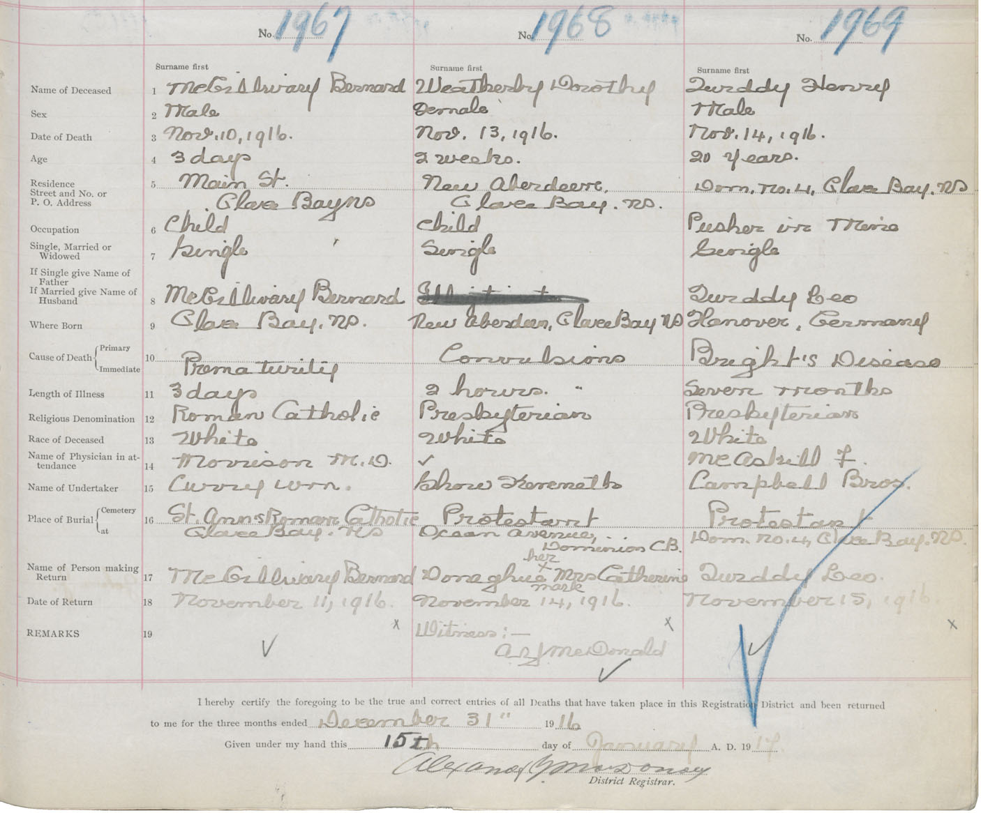 Death Registration: Year: 1916 book: 28 page: 485 number: 1967