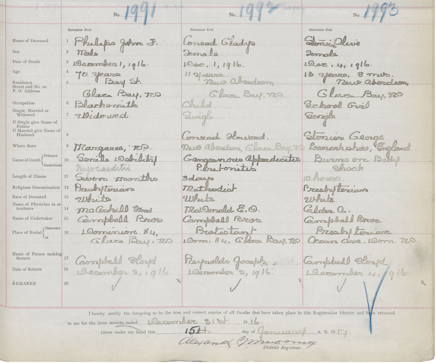 Death Registration: Year: 1916 book: 28 page: 489 number: 1991