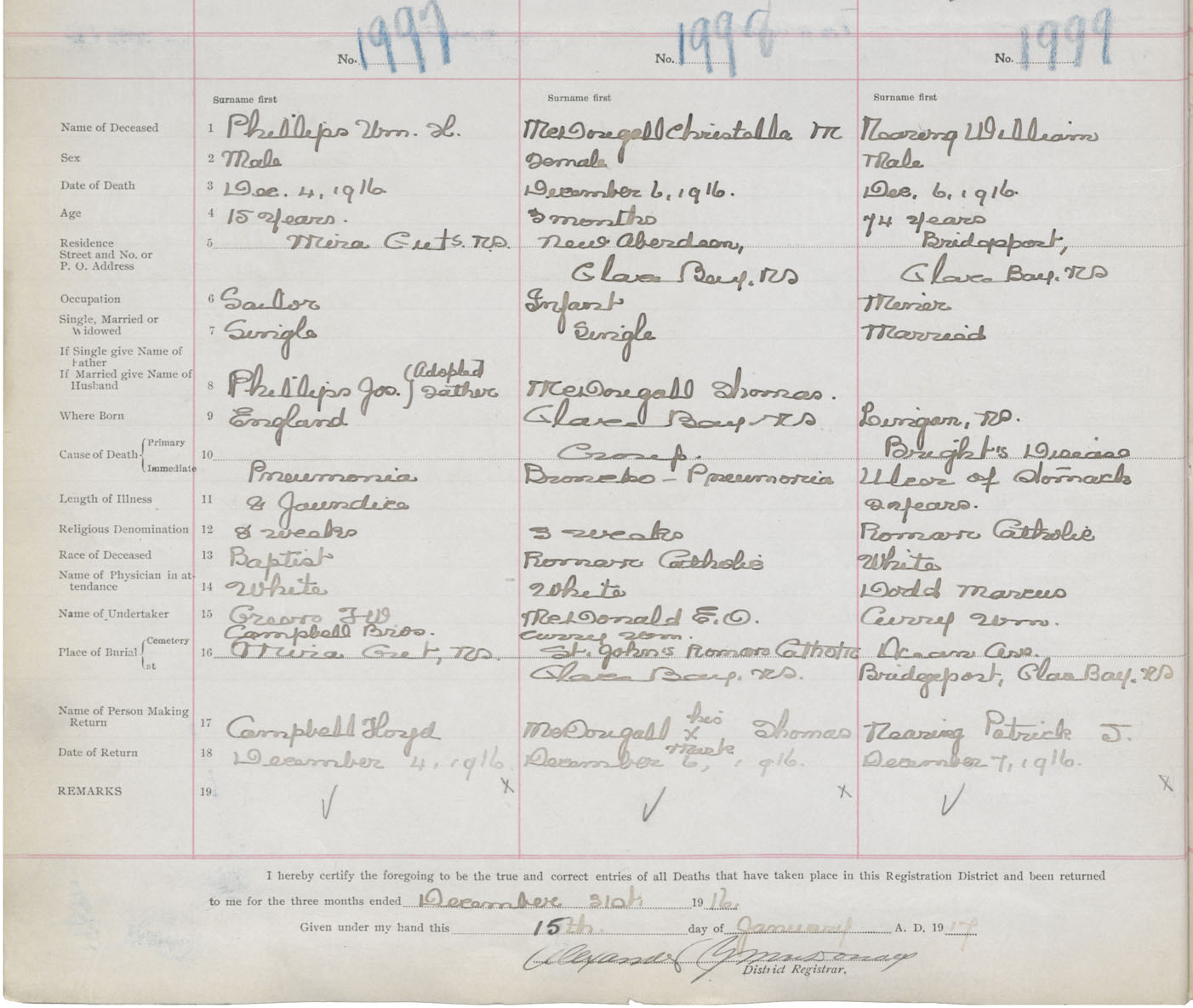 Death Registration: Year: 1916 book: 28 page: 490 number: 1997