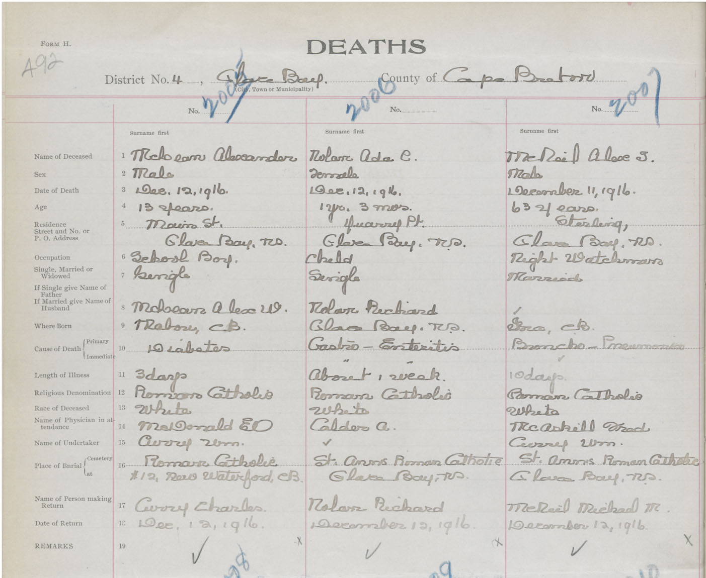 Death Registration: Year: 1916 book: 28 page: 492 number: 2005