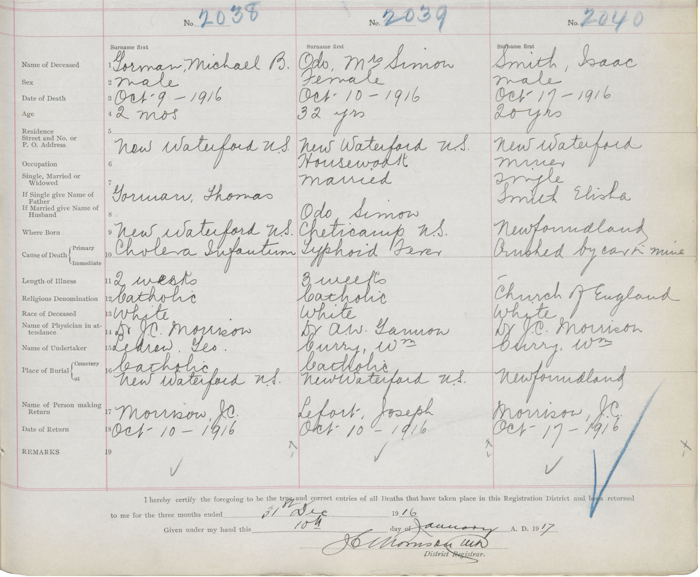 Death Registration: Year: 1916 book: 28 page: 505 number: 2038
