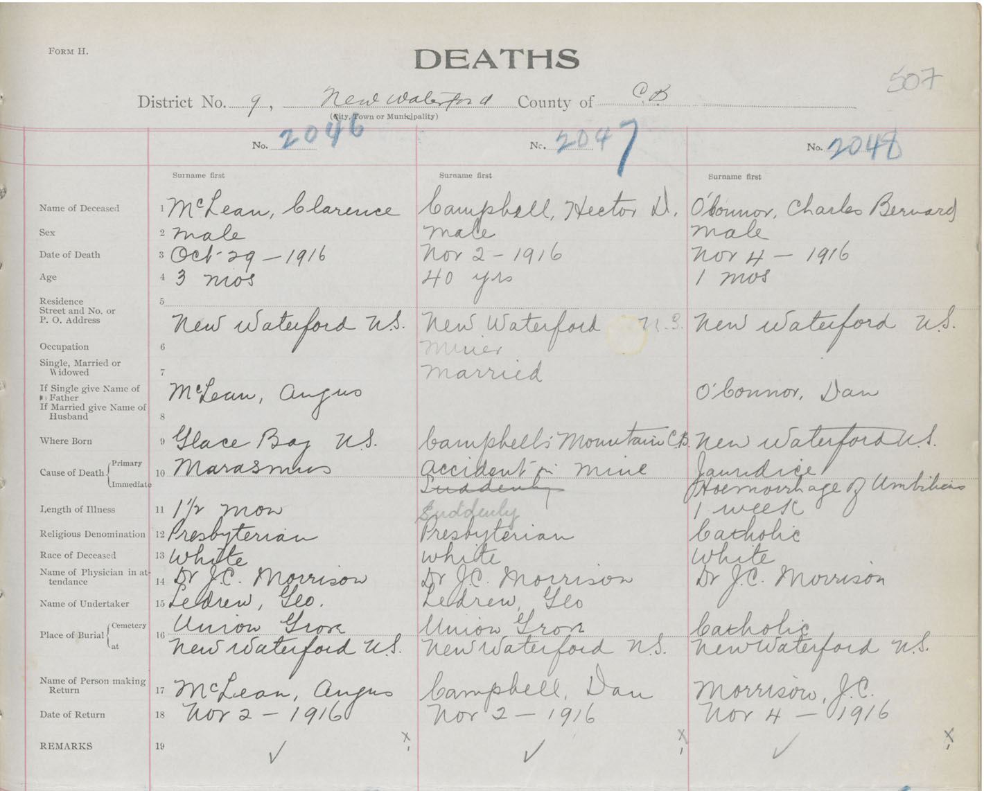 Death Registration: Year: 1916 book: 28 page: 507 number: 2046