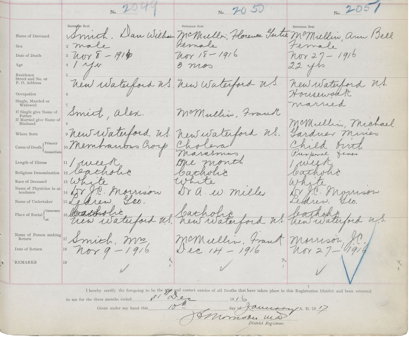 Death Registration: Year: 1916 book: 28 page: 507 number: 2049