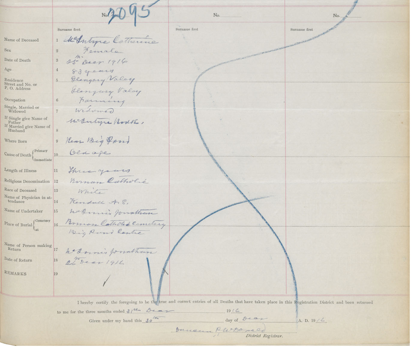 Death Registration: Year: 1916 book: 28 page: 527 number: 2095