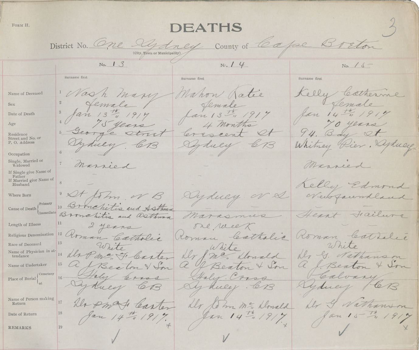 Death Registration: Year: 1917 book: 29 page: 3 number: 13