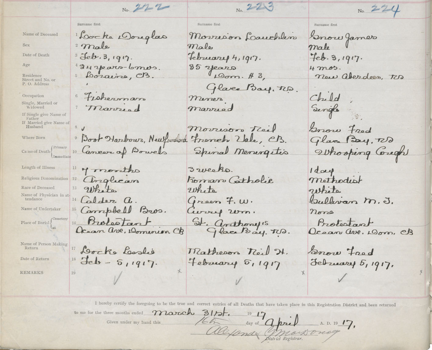 Death Registration: Year: 1917 book: 29 page: 42 number: 224