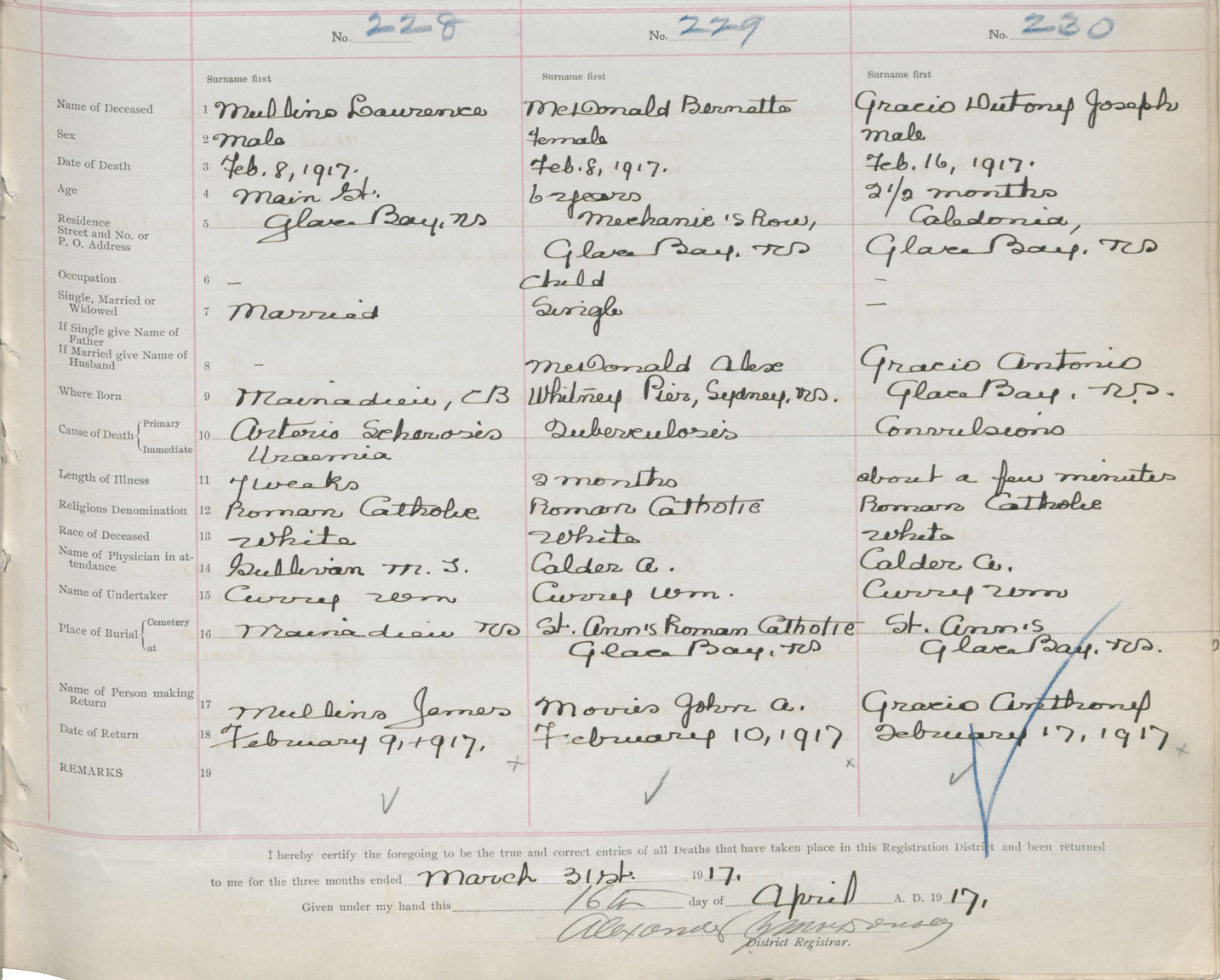 Death Registration: Year: 1917 book: 29 page: 43 number: 230