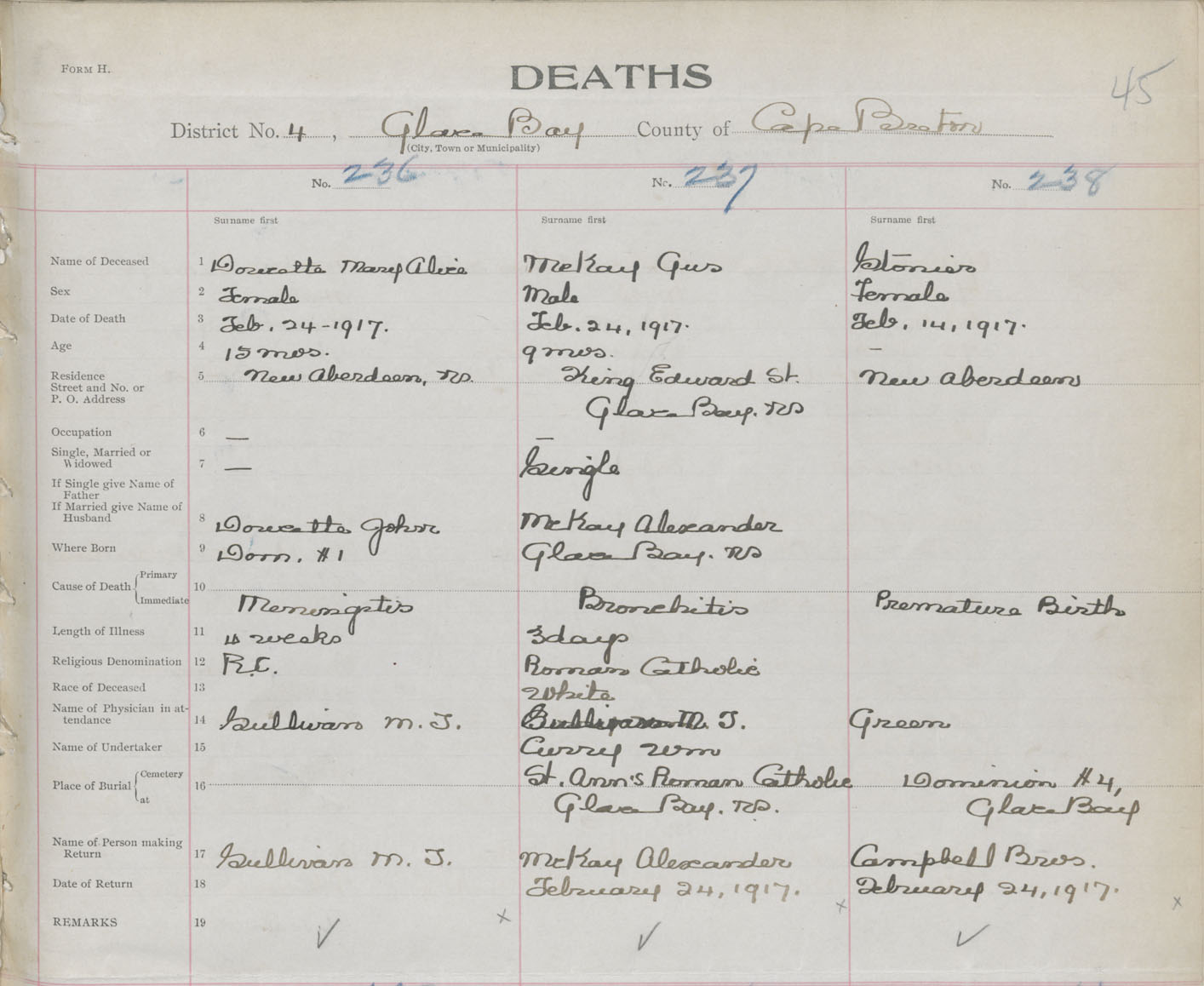 Death Registration: Year: 1917 book: 29 page: 45 number: 238