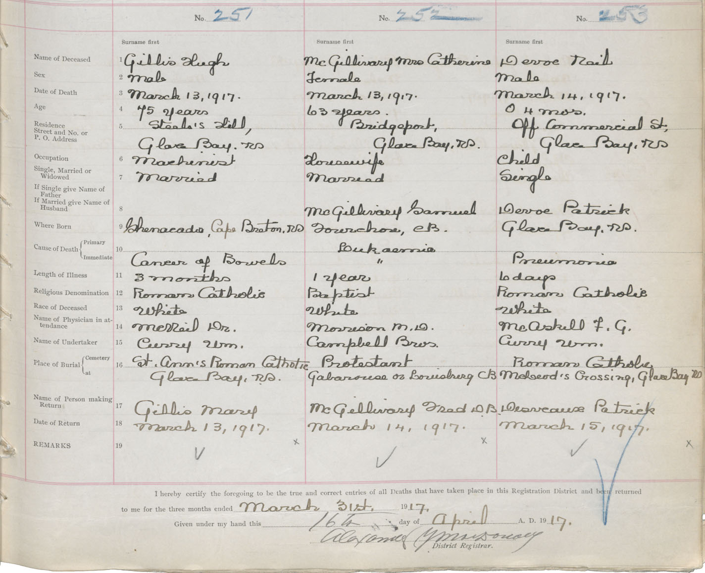 Death Registration: Year: 1917 book: 29 page: 47 number: 253