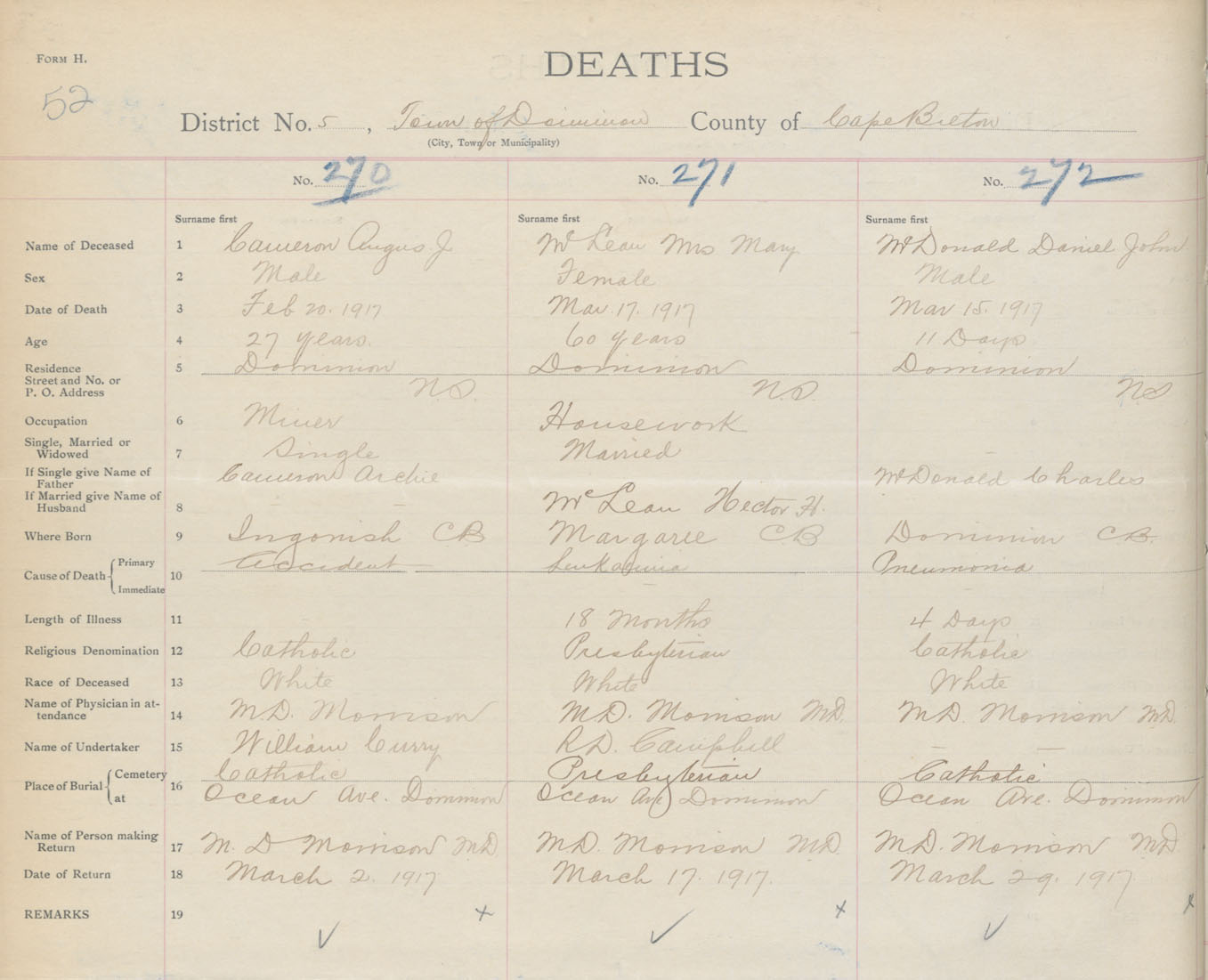 Death Registration: Year: 1917 book: 29 page: 52 number: 272