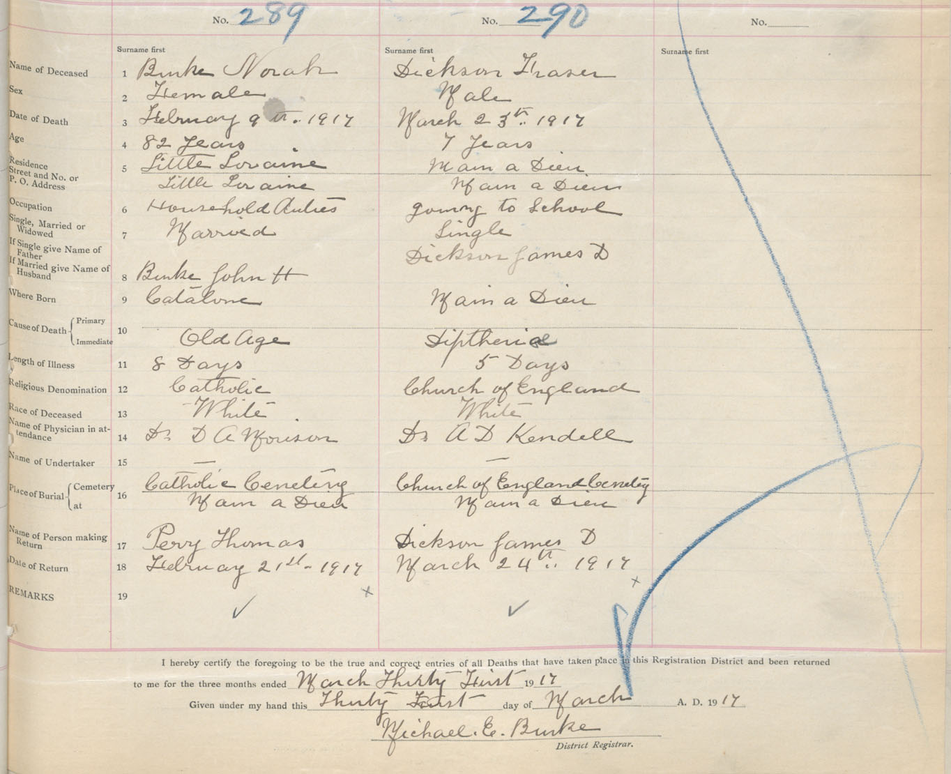 Death Registration: Year: 1917 book: 29 page: 57 number: 290