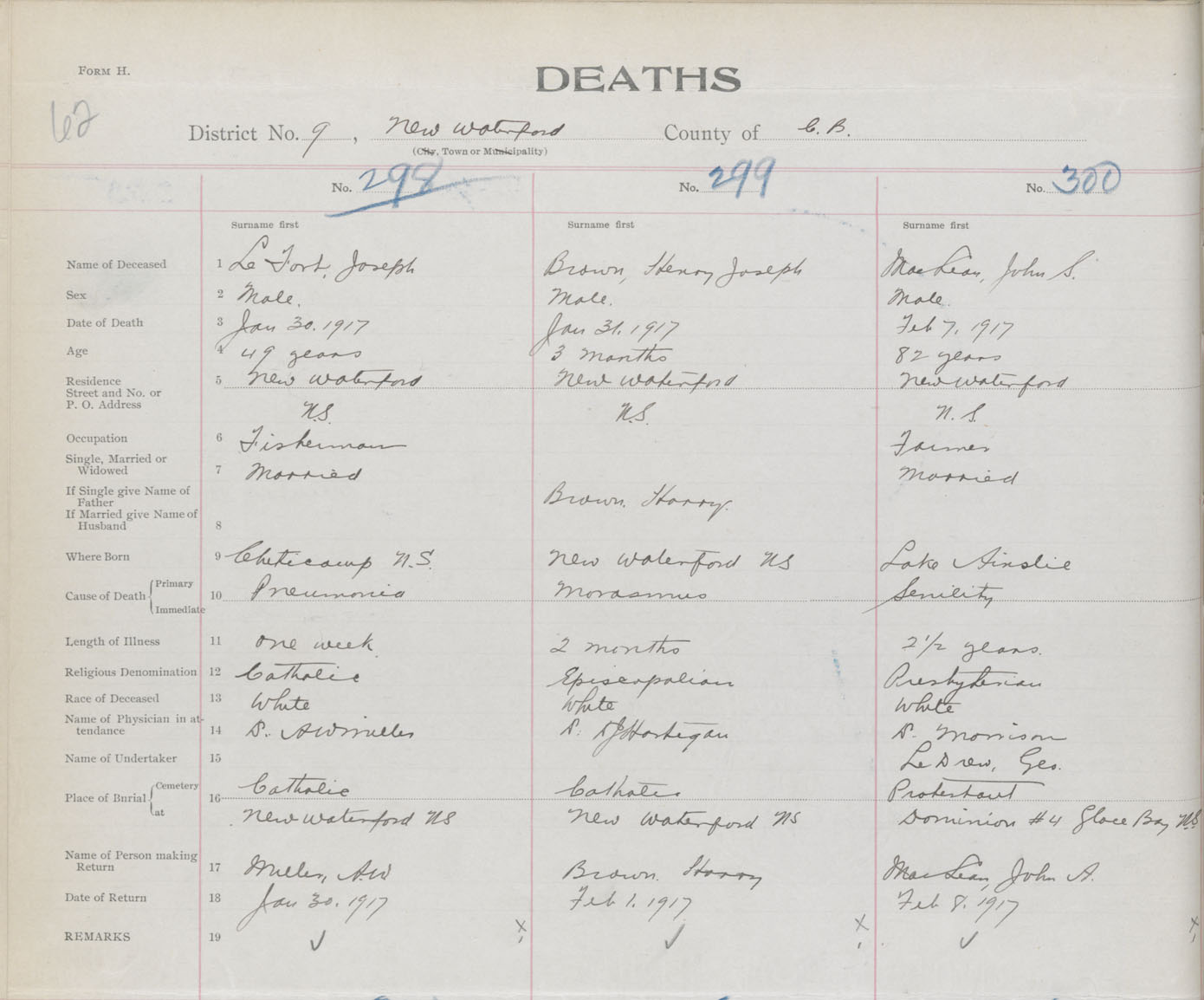 Death Registration: Year: 1917 book: 29 page: 62 number: 300