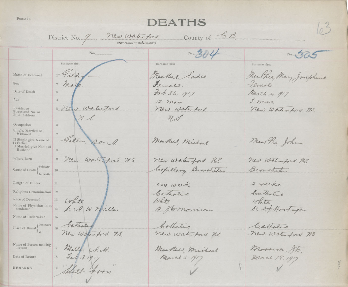 Death Registration: Year: 1917 book: 29 page: 63 number: 305