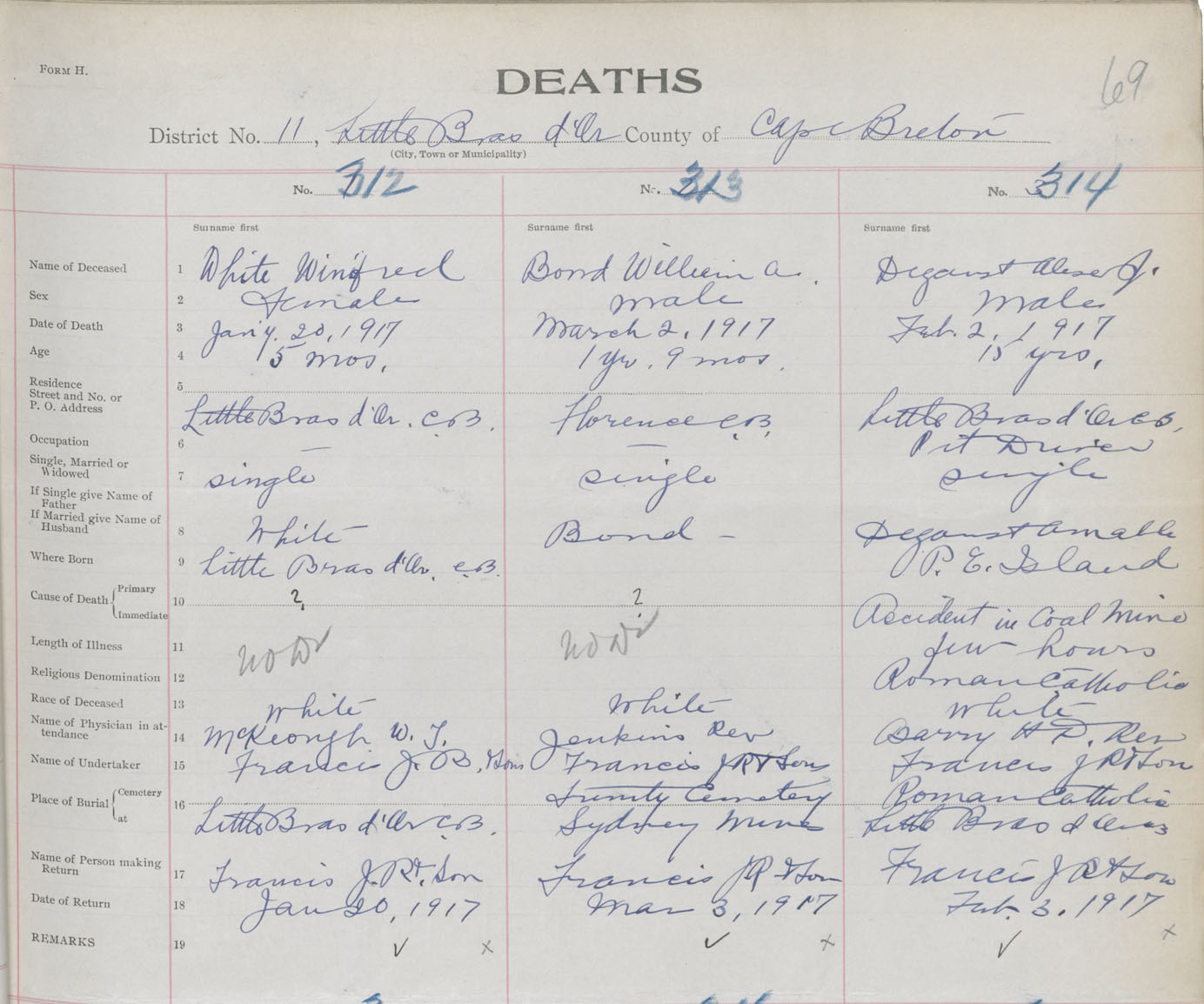 Death Registration: Year: 1917 book: 29 page: 69 number: 314