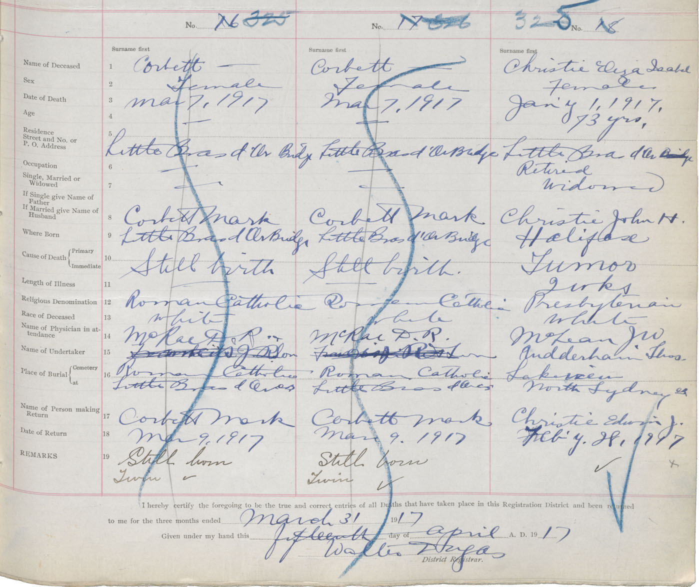Death Registration: Year: 1917 book: 29 page: 71 number: 325