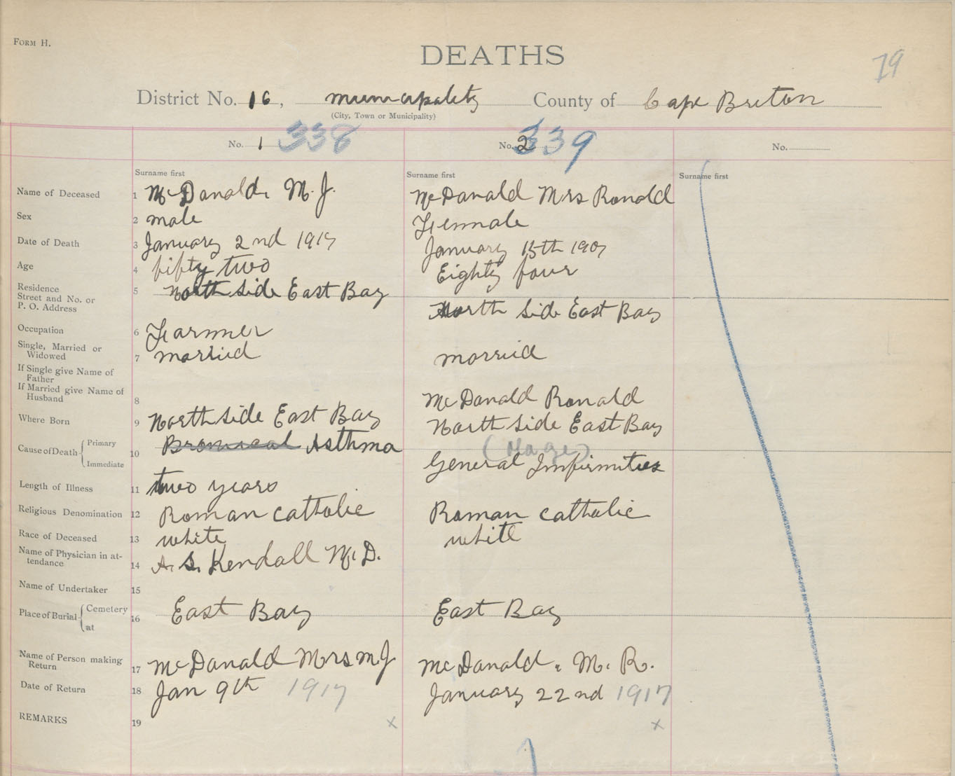 Death Registration: Year: 1917 book: 29 page: 79 number: 339