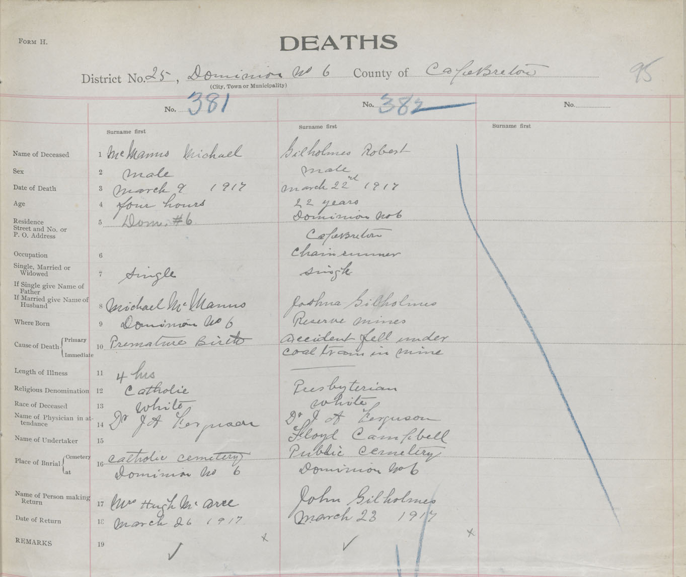 Death Registration: Year: 1917 book: 29 page: 95 number: 381