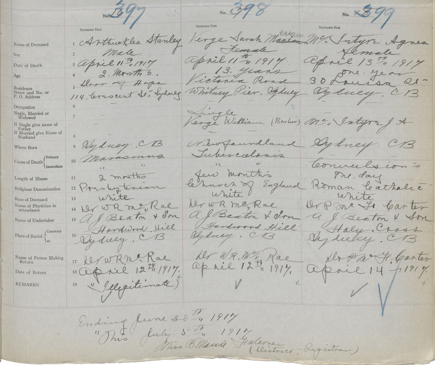 Death Registration: Year: 1917 book: 29 page: 99 number: 397