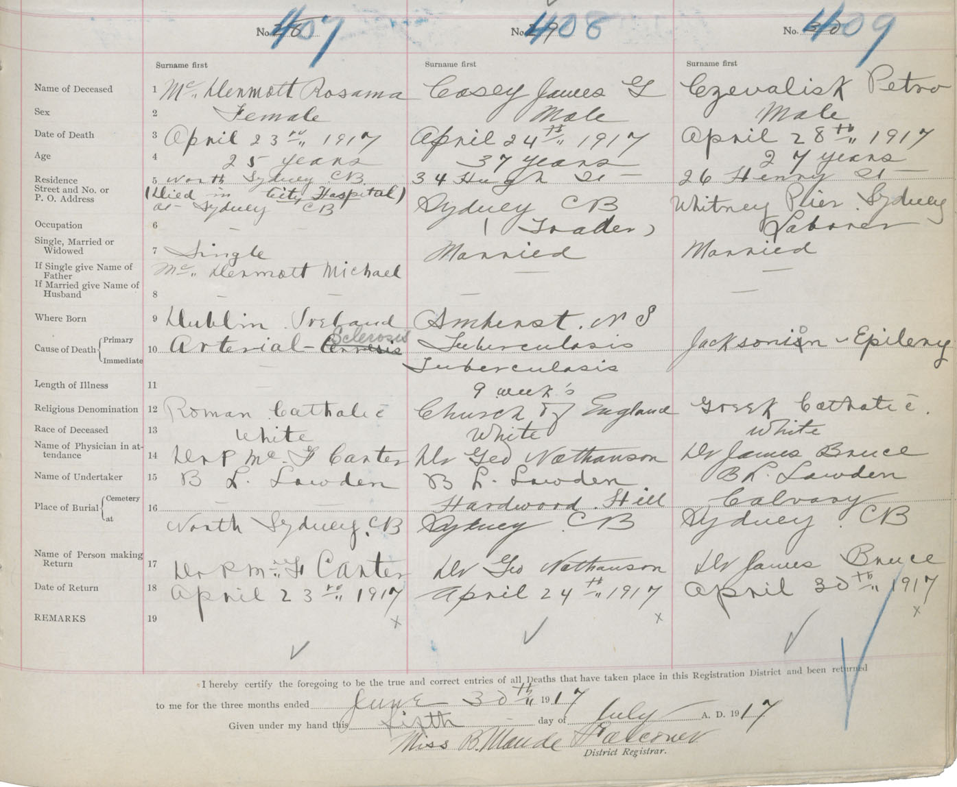 Death Registration: Year: 1917 book: 29 page: 101 number: 407