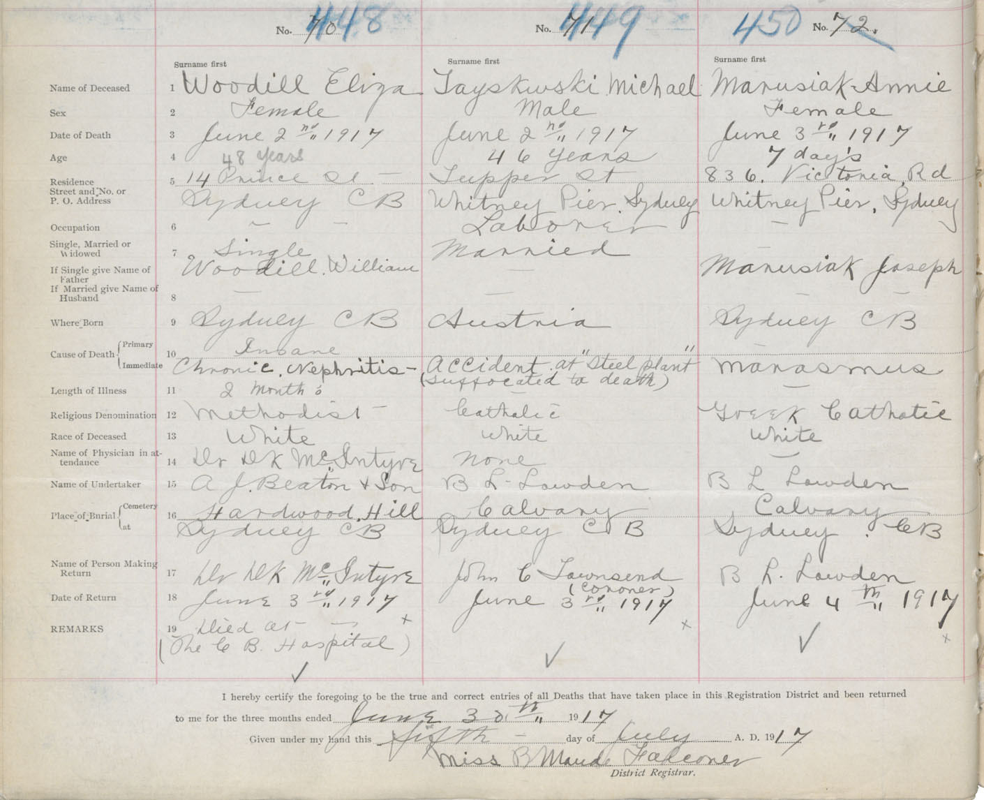 Death Registration: Year: 1917 book: 29 page: 108 number: 448