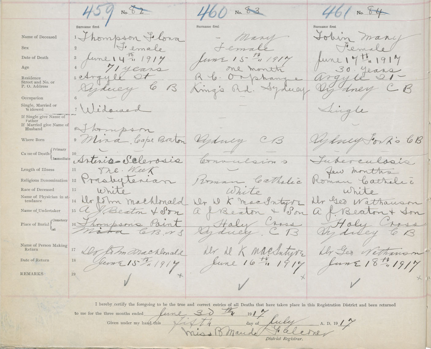 Death Registration: Year: 1917 book: 29 page: 110 number: 459