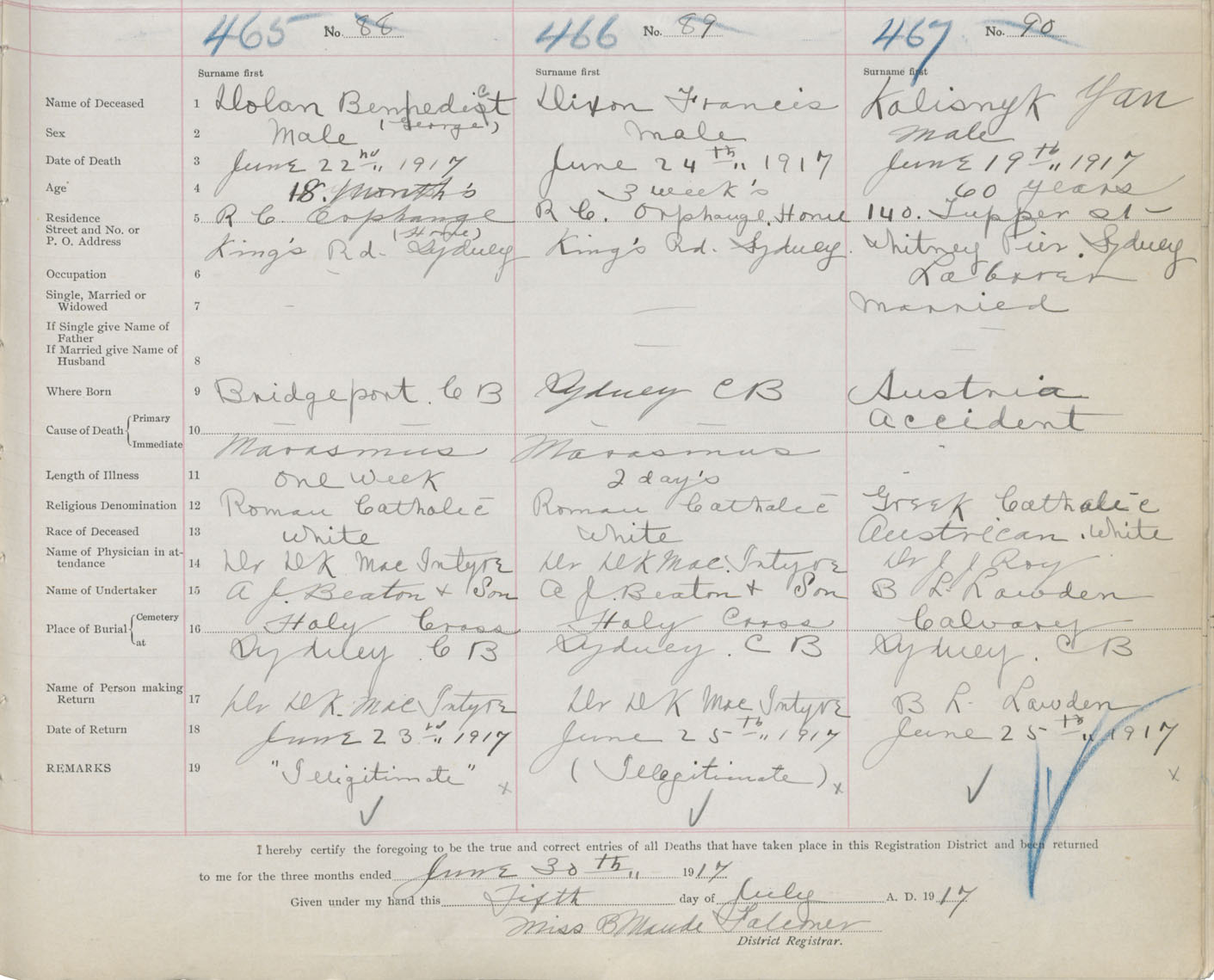 Death Registration: Year: 1917 book: 29 page: 111 number: 465