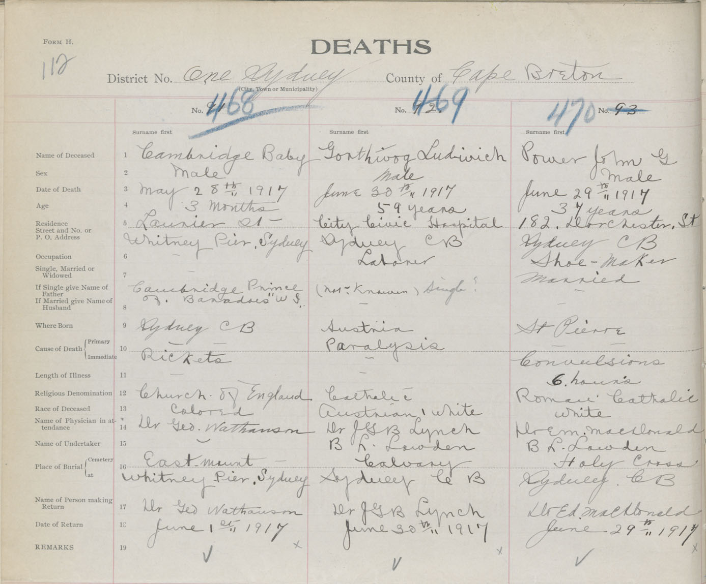 Death Registration: Year: 1917 book: 29 page: 112 number: 468