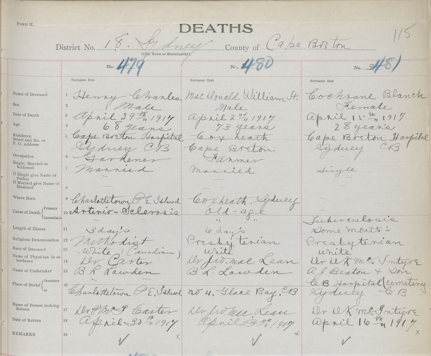 Death Registration: Year: 1917 book: 29 page: 115 number: 481