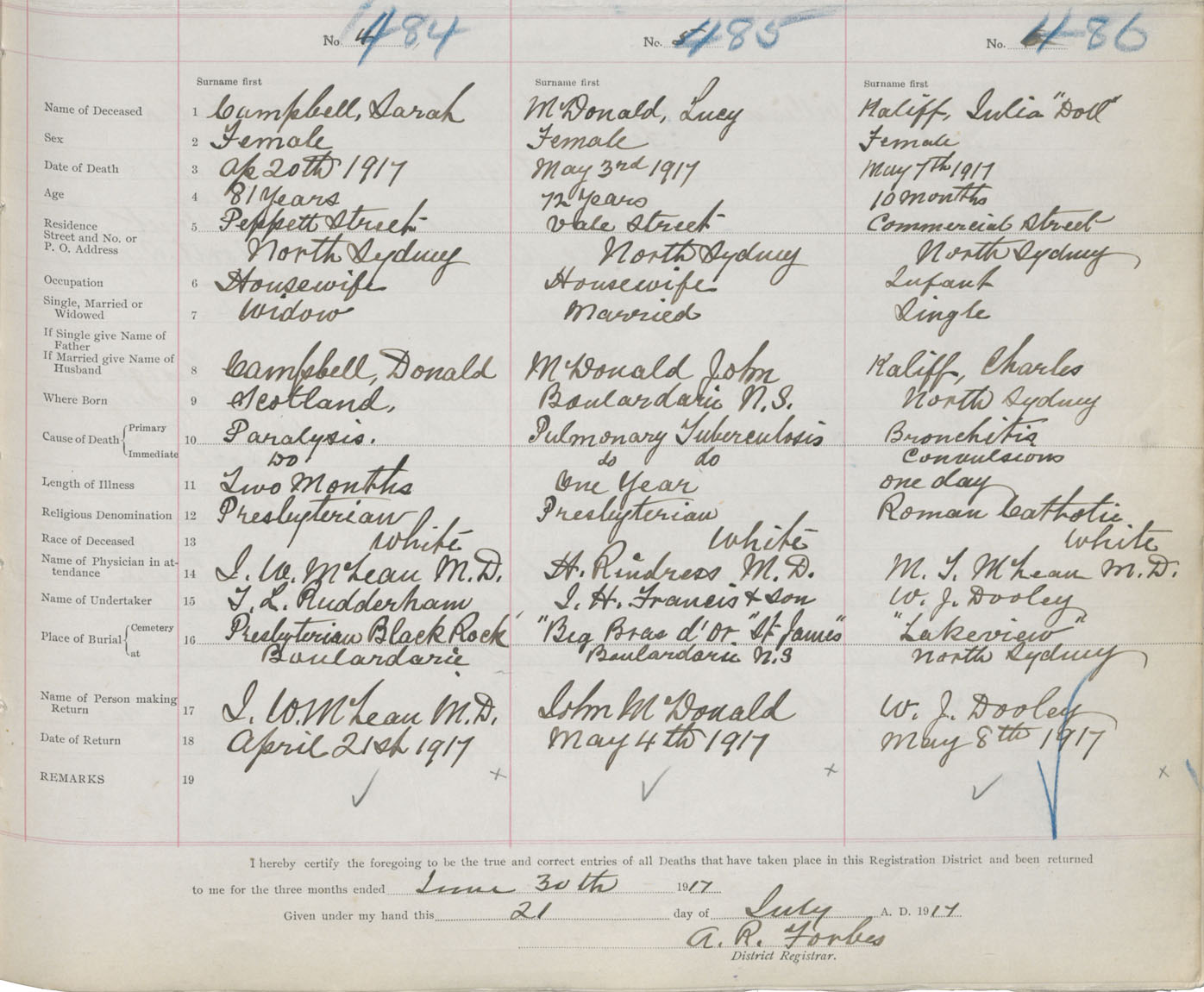 Death Registration: Year: 1917 book: 29 page: 117 number: 486