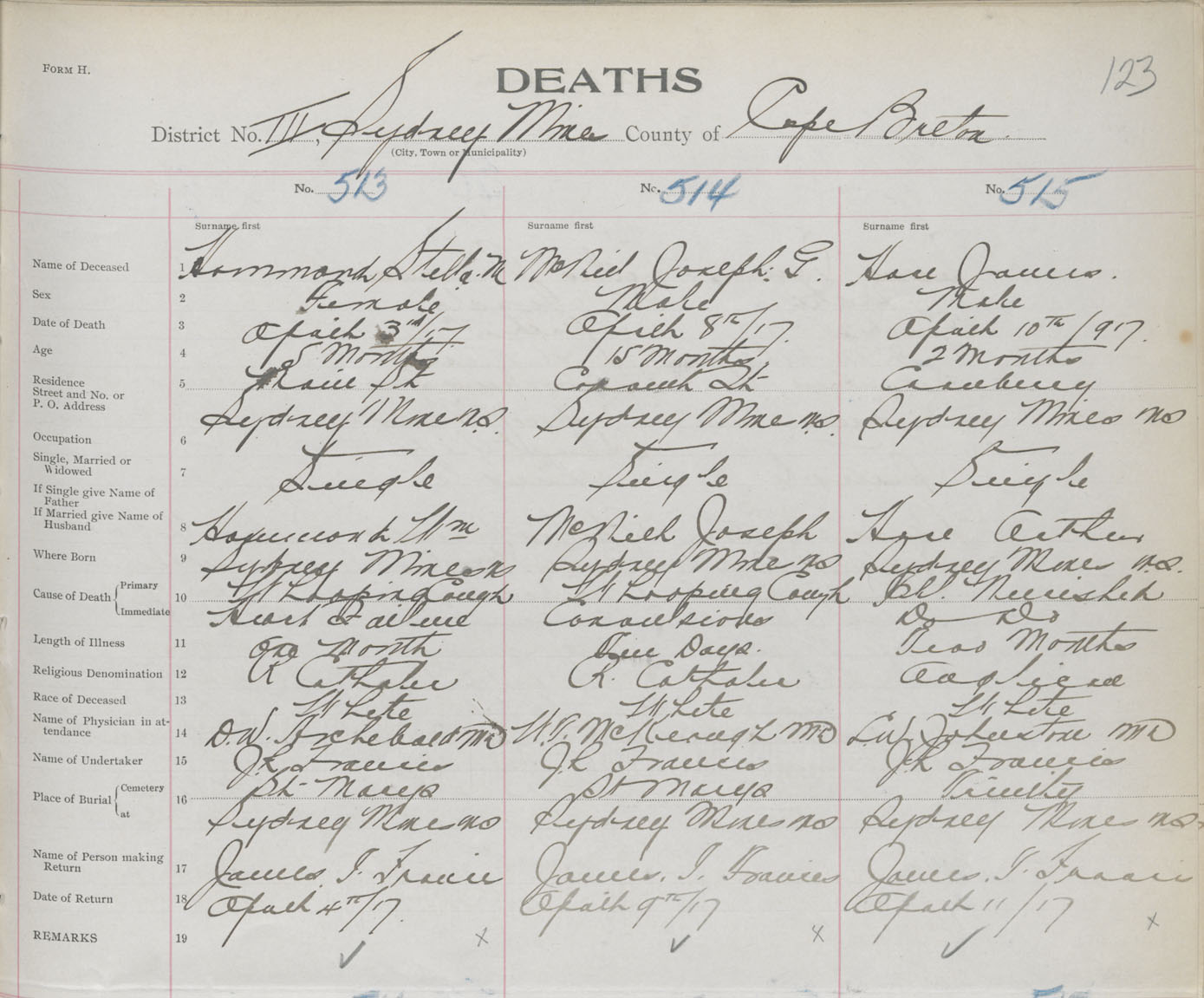 Death Registration: Year: 1917 book: 29 page: 123 number: 515