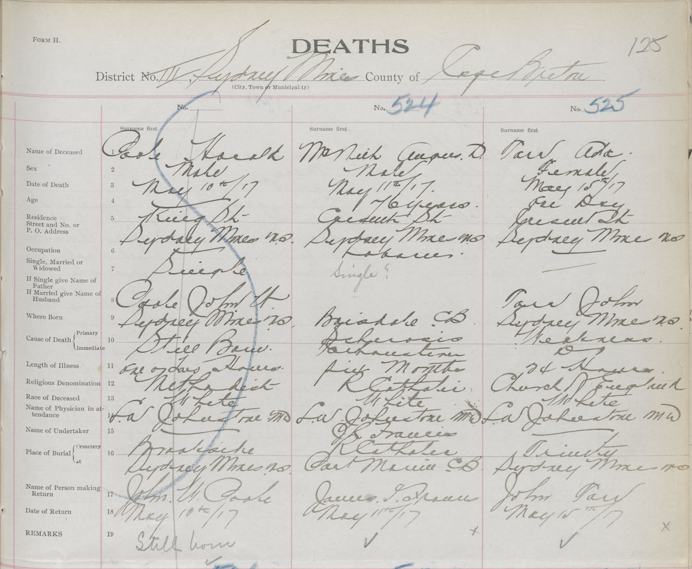 Death Registration: Year: 1917 book: 29 page: 125 number: 525